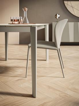 Bontempi Design. Pocci and Dondoli - Réf. 40.92 / 40.93 Dimensions : l 49 x h 84 x p 61 cm chaise avec structure en acier et/ou rembourrée et revêtue en: Cuir éco, Cuir Éco Premium, Tissu Bouquet, Tissu Nordic, Pure Virgin Wool, Supreme Velours, Tissu Kvadrat Field, Tissu Kvadrat Coda et Peau Premium.