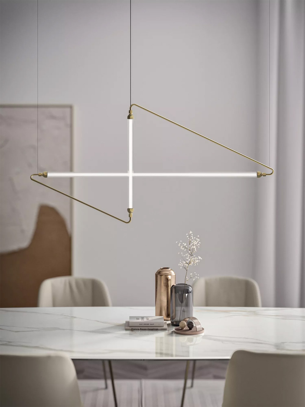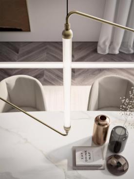 La lampe Astra incarne la pureté et la légèreté, fusionnant forme et fonction dans une création élégante. Sa structure, composée de deux triangles entrelacés, dessine une silhouette saisissante qui façonne l’espace avec une grâce minimaliste. Son abat-jour en verre nervuré et opaque diffuse une lumière douce, créant un jeu subtil d’ombres ambiantes, tandis que la surface métallique réfléchissante ajoute profondeur et dimension. Bien plus qu’un simple luminaire, Astra est une œuvre où géométrie et savoir-faire s’entrelacent, enrichissant chaque intérieur par sa présence discrète mais inimitable.