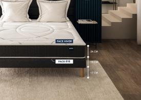 Bultex L'ensemble matelas + sommier Softly, avec 5 zones de confort, vous offre un soutien morphologique en tous points et un confort ferme. Dimensions : 80/.../200 x 190/200 cm Confort Ferme = Accueil Mémoire de forme + Soutien Très Ferme + Sommier Équilibré MOUSSE À MÉMOIRE DE FORME Allège les points de pression. INDÉPENDANCE DE COUCHAGE L'assurance d'un excellent maintien pour les deux dormeurs sans se gêner pendant la nuit. ASSOUPLIT LE CONFORT DU MATELAS Apporte un confort medium morphologique grâce à ses 3 zones de confort. 1. Tissu Zéro traitement, le tissu 100% stretch apporte aussi douceur et confort. 2. Mousse à mémoire de forme Allège les points de pression et s'adapte parfaitement à chaque morphologie. 3. Fibre naturelle Composée de laine et de coton et partie intégrante du matelas, elle offre gonflant et amplifie l'aération du matelas. 4. Cœur de 17 cm Bultex® nano, 5 zones (5% origine durable) La technologie Bultex® nano 38 kg/m3, avec sa découpe en 5 zones de confort offre un soutien morphologique en tous points. 5. Mousse de confort Apporte une touche de confort supplémentaire pour un accueil en douceur et éviter la chaleur en été. 6. Fibre polyester Partie intégrante du matelas, elle offre gonflant et amplifie l'aération du matelas. 7. Poignées horizontales Facilitent la manipulation du matelas. 8. Sommier Équilibré Idéal pour assouplir le confort du matelas Softly. Disponible en 5 coloris. Pieds inclus. 2 pieds supplémentaires et un kit de liaison sont inclus avec tous les sommiers à partir de la dimension 160 x 200 cm. Confort : Ferme Accueil : Mémoire de forme Soutien : Très ferme Épaisseur du matelas en cm : 24 Traitement(s) : Zéro traitement ensemble literie
